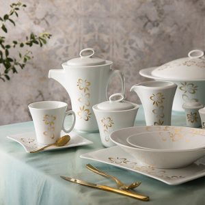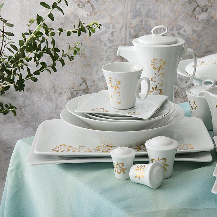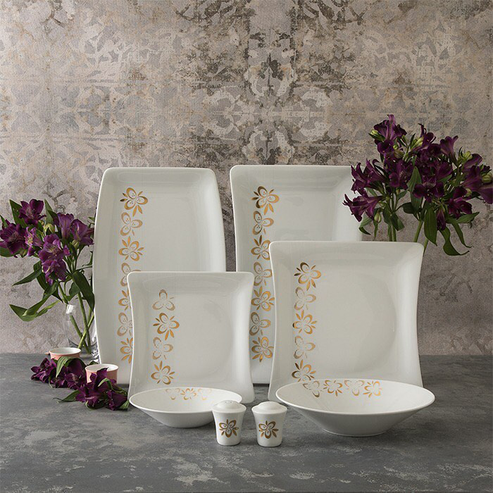 سرویس چینی 97 پارچه زرین طرح پریماورا برای پذیرایی و سرو غذا به تعداد 12 نفر تهیه شده و تمام ظروف اساسی و ضروری برای میز غذا را در خود دارد.