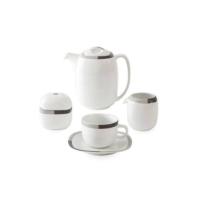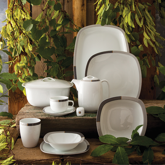 سرویس چینی 98 پارچه زرین وگاس اوریت از سری کواترو که طراحی و تولید شده است مناسب برای پذیرایی از دوازده نفر است و با هوشمند خود هارمونی جذابی به این طرح داده است. استفاده از طلای ناب برای تزئین رده های رنگ ها این طرح ایده خیلی خوبی رو دنبال کرده که وگاس را خلق کرده است.