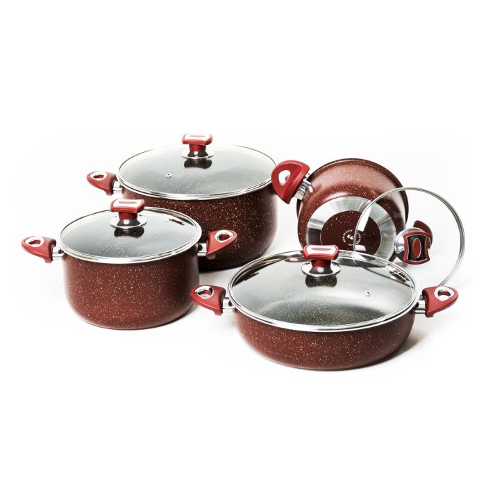 سرویس قابلمه های گرانیتی در سال های اخیر وارد بازار شده است. و تابحال از همه سخت تر و مقاوم تر بوده اند و همچنین نچسب هستند و به راحتی قابل شستشو است. خوب است بدانید که مقدار روغن استفاده شده در آن نسبتاً کمتر است و غذا دیرتر از قابلمه های استیل می سوزد. بنابراین ، با توجه به نکات ذکر شده ، این محصول ممکن است سرویس قابلمه انتخابی برای بیشتر افراد باشد.