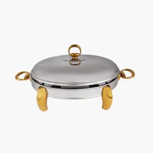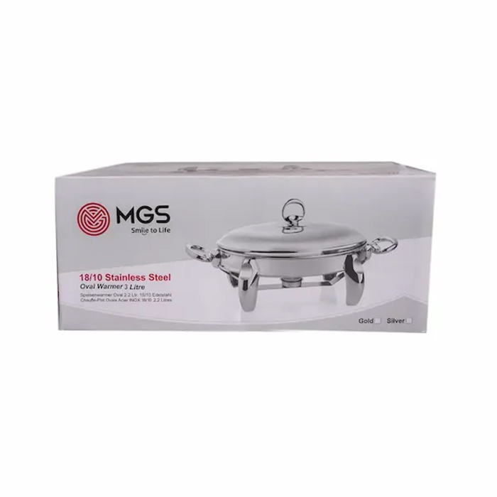 سوفله خوری بزرگ بیضی MGS مدل 3105 از استیل ضد زنگ ساخته شده است که علاوه بر زیبایی مقاومت بسیار زیادی در برابر رطوبت نیز دارد. ظرف پیرکس داخل آن به همراه جاشمعی قرار گرفته در زیر آن، خیال شما را بابت گرم نگه داشتن غذا در تمام طول مدت سرو آن، کاملا راحت میکند.