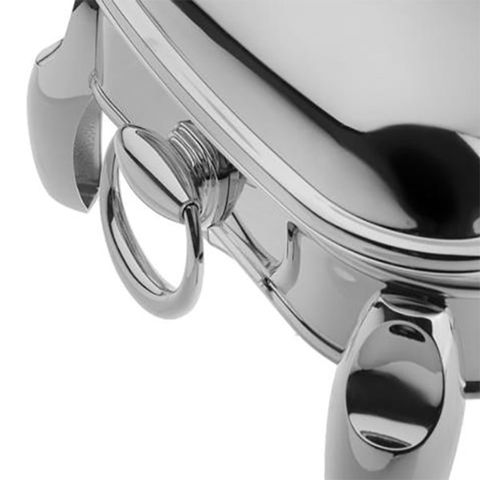 سوفله خوری متوسط نقره ای رامیسا دارای یک عدد پایه وارمر، یک درپوش و یک ظرف پیرکس است و تحمل ۳۰۰ درجه سانتیگراد حرارت دارد