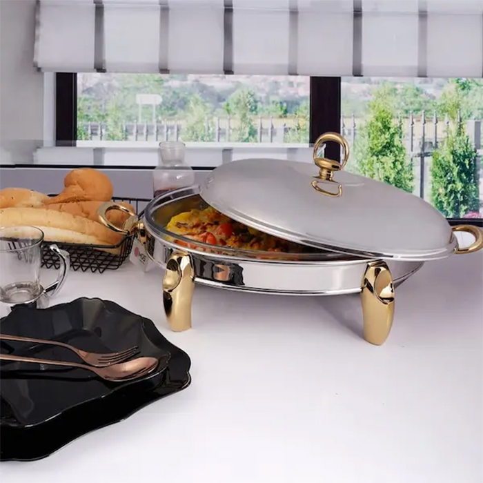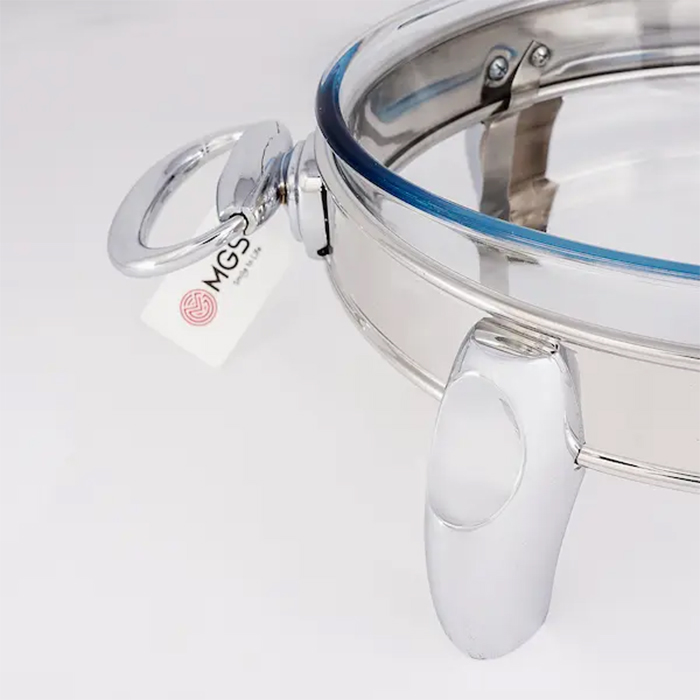 سوفله خوری کوچک بیضی MGS مدل 3107 از استیل ضد زنگ ساخته شده است که علاوه بر زیبایی مقاومت بسیار زیادی در برابر رطوبت نیز دارد. ظرف پیرکس داخل آن به همراه جاشمعی قرار گرفته در زیر آن، خیال شما را بابت گرم نگه داشتن غذا در تمام طول مدت سرو آن، کاملا راحت میکند.