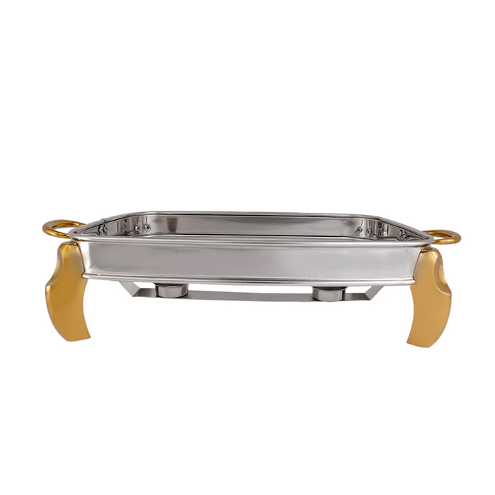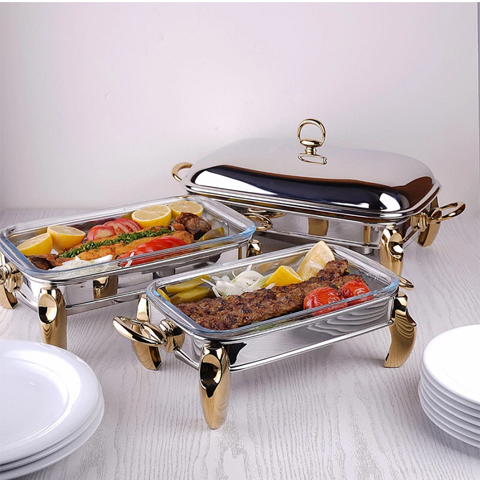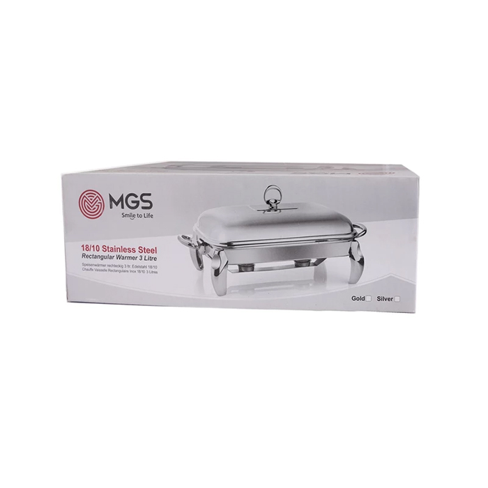 سوفله خوری کوچک مستطیل MGS مدل 3103 از استیل ضد زنگ ساخته شده است که علاوه بر زیبایی مقاومت بسیار زیادی در برابر رطوبت نیز دارد. ظرف پیرکس داخل آن به همراه جاشمعی قرار گرفته در زیر آن، خیال شما را بابت گرم نگه داشتن غذا در تمام طول مدت سرو آن، کاملا راحت میکند.
