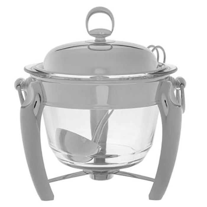 سوفله سوپ خوری نقره ای رامیسا دارای پایه استیل،درب استیل،ظرف پیرکس و ملاقه است و تحمل ۳۰۰ درجه سانتیگراد حرارت دارد