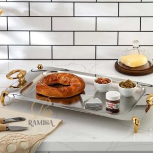 طراحی مثال زدنی سینی پایه دار رامیسا ، پایه ها و دسته های محکم و متحرک سینی که باعث زیبایی دوچندان این محصول شده از دیگر مزایای این سینی است. در مجموع این سینی میتواند بهترین انتخاب برای بانوان خوش سلیقه در امر پذیرایی از میهمانانشان در مجالس پذیرایی باشد.