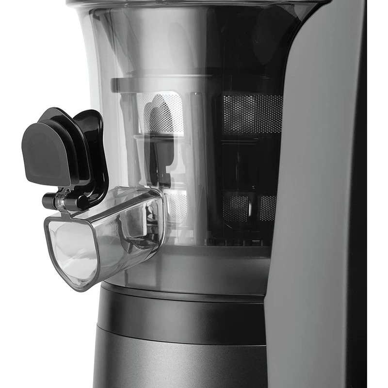دهانه ورودی عریض 3 اینچی (حدود 76 میلیمتر) امکان وارد کردن قطعات بزرگ میوه و سبزیجات را بدون نیاز به خرد کردن زیاد فراهم میکند و سرعت آمادهسازی را افزایش میدهد. تیغه مارپیچی با نوک فولادی بادوام، به آرامی و با دقت بالا مواد را خرد و آبگیری میکند و تفاله خشک و کمحجمی تولید مینماید.