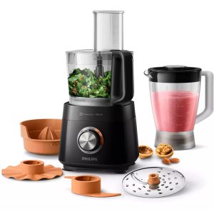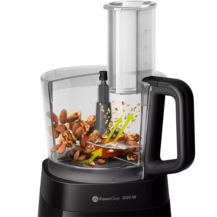 تمامی اجزای اغذاساز فیلیپس مدل HR7510 از موتور 800 واتی آن، بدون دردسر تغذیه می کنند. این غذاساز جمع و جور، فضای کمی را اشغال می کند، با این وجود کاملاً مجهز به تمام ملزومات یک آشپزخانه است که می توان به راحتی آنها را در داخل کاسه جای داد و انواع وعده های غذایی، نان، سس ها، آب میوه ها و موارد دیگر را بدون زحمت آماده کرد.