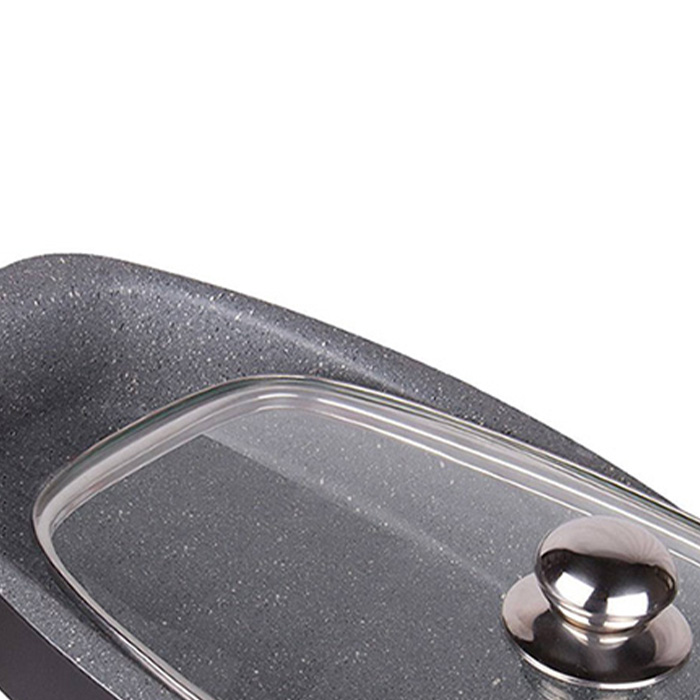 فر تابه ماهی درب پیرکس گرانیت کاج تفلون با پوشش گرانیت و سایز 46*26 سانتیمتر با درب معمولی و مستطیلی مناسب پختن و سرخ کردن همه نوع مواد غذایی می باشد ولی طراحی اصلی این فر تابه جهت پختن و سرخ کردن ماهی انجام گرفته است.