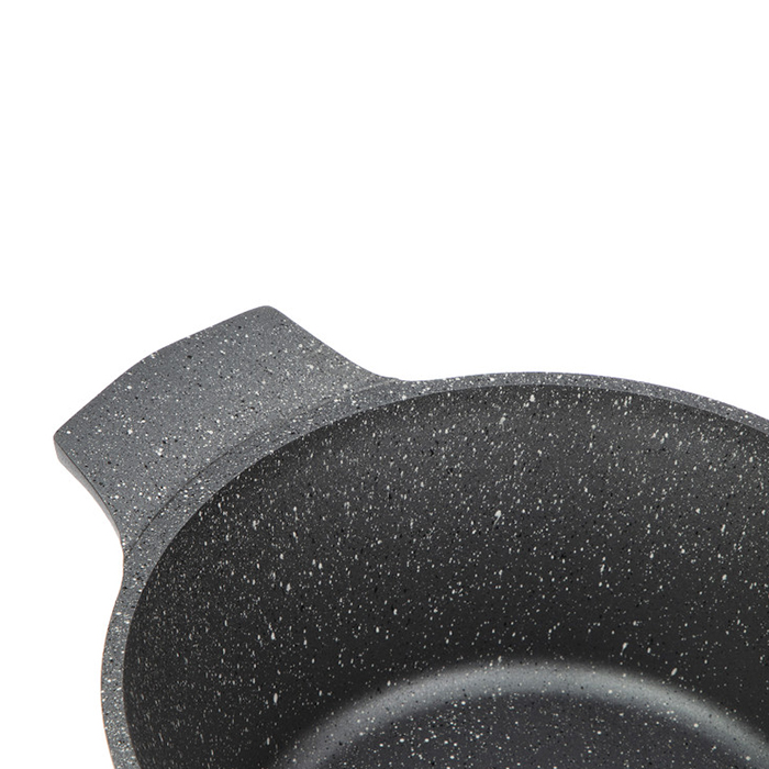 قابلمه دسينی مدل رجینا سایز 32 ساخته شده از آلومینیوم بوده که با گرانیت نچسب روکش شده و دارای دو دسته در طرفین است که از جنس بدنه ساخته شدهاند همچنین درپوشی از جنس پیرکس دارد که نظارت بر پخت و پز را راحت میکند و با رینگ فلزی پوشیده شده و این امر مانع از ایجاد خوردگی در لبههای ظرف میشود .