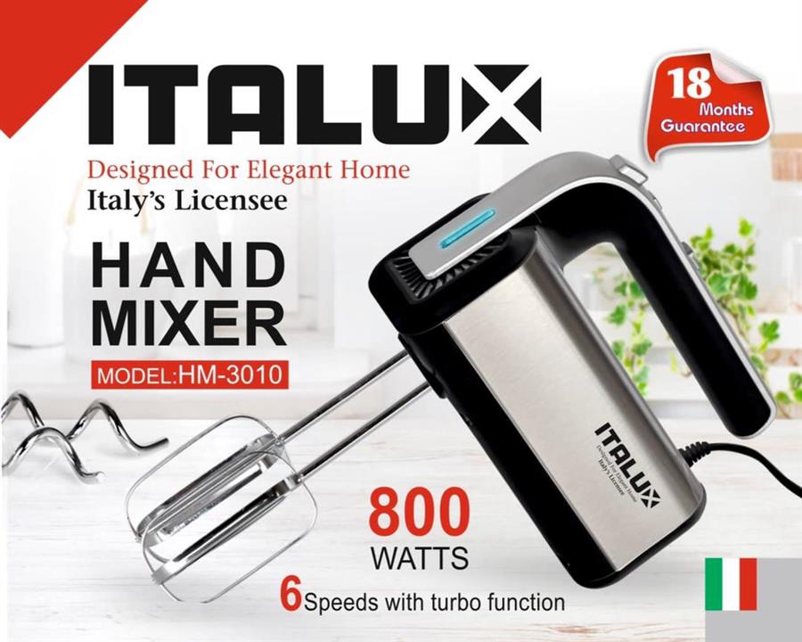 این محصول شامل پک کامل متعلقات چون همزن دستی و پره های استیل ضد زنگ آن بوده و همچنین به سنسور های ایمنی، کم مصرف و کم صدا بودن آنها شناخته می شود، تمامی اجزا غیر برقی همزن دستی ایتالوکس قابلیت شتسشو داشته و به راحتی پاکیزه می شوند.