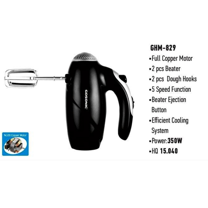همزن گوسونیک مدل GHM-839 وسیله ای جمع و جور، کوچک و کاربردی است که به راحتی و بدون اشغال فضای زیاد، در هر آشپزخانه ای جای می گیرد. این مدل با بهره گیری از دو سری همزن و خمیرزن همانند یک دستیار ایده آل در تهیه خامه، کیک، خمیر و … عمل می کند.