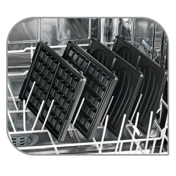 دما به سرعت افزایش می یابد و عملکرد بسیار ساده ای را ارائه می دهد، بدون تنظیمات پیچیده برای برنامه ریزی! صفحات قابل جابجایی و تعویض بسیار مبتکرانه و بسیار کاربردی هستند تا لذت ها را متفاوت نمایند. به دلیل روکش نچسب و صفحات قابل شستشو در ماشین ظرفشویی ، تمیز کردن وافل ساز تفال مدل SW857D12 آسان می باشد.