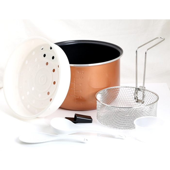 تکنو برای جلب رضایت هر چه بیشتر مشتریان، قابلمه این پلوپز دیجیتالی را به صورت دو لایه تفلون با ضخامت 2 میلیمتر ارائه کرده تا با اطمینان خاطر بتوان کیک و یا ته دیگ های خوش رنگ و طلایی را آماده نمود. ظرفیتی که تکنو برای 606 در نظر گرفته شده، 1.8 لیتر است که این میزان برای خانواده هایی با جمعیت 8 تا 10 نفر مناسب می باشد.