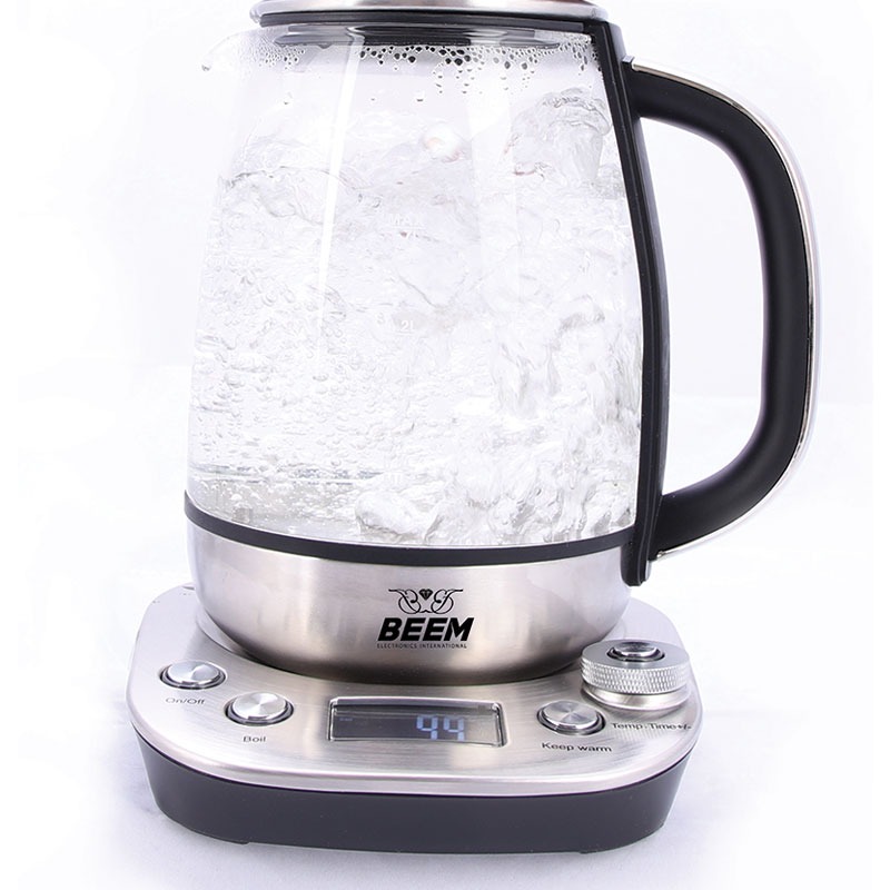 تفاله گیر تعبیه شده در چای ساز بیم مدل TM2806 به بالابردن کیفیت چای و شفاف بودن آن کمک میکند. پایه چای ساز بیم مدل TM2806 با رنگ سیلور مجهز به دکمههای کنترلی است که کارایی دستگاه را بالاتر میبرد. بر روی پایه چای ساز بیم مدل 2806 صفحه نمایشگر بزرگی طراحی شده است که میزان دمای آب و زمان برنامه را نشان میدهد. چای ساز بیم مدل 2806 مجهز به کلید گرم نگهدارنده خودکار است که در حفظ کیفیت چای موثر است.