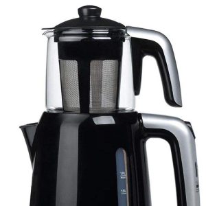 گفتنی است این فیلتر ضد رسوب متحرک به آسانی قابل جداسازی و شست و شو نیز می باشد. بر روی دسته کتری چای ساز تفال مدل BJ2018، کلیدی برای خاموش / روشن کردن طراحی شده و همچنین می توان آب را در حالت جوش و یا گرم نگهدار قرار داد تا چای به آرامی دم کشیده و آماده گردد.