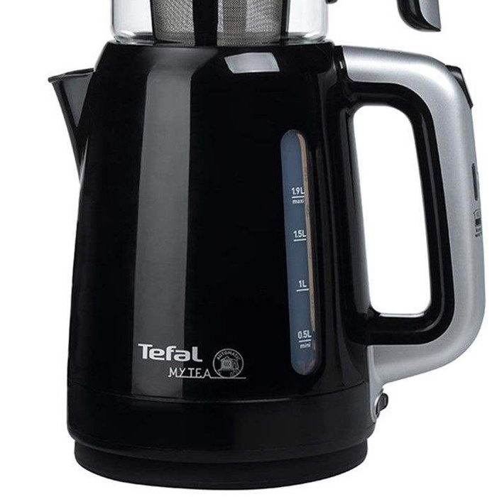 تفال گنجایش کتری چای ساز تفال مدل BJ2018 را 1.9 لیتر در نظر گرفته که با سرعت حدود 3 تا 8 دقیقه آب جوش مورد نیاز را آماده می نماید و میزان آب موجود در کتری توسط نشانگری که بر روی آن تعبیه گردیده، قابل رویت می باشد. قوری این چای ساز از جنس شیشه ساخته شده و صافی استیل ضد زنگی در آن قرار می گیرد که از ورود برگ چای به درون قوری جلوگیری می کند.