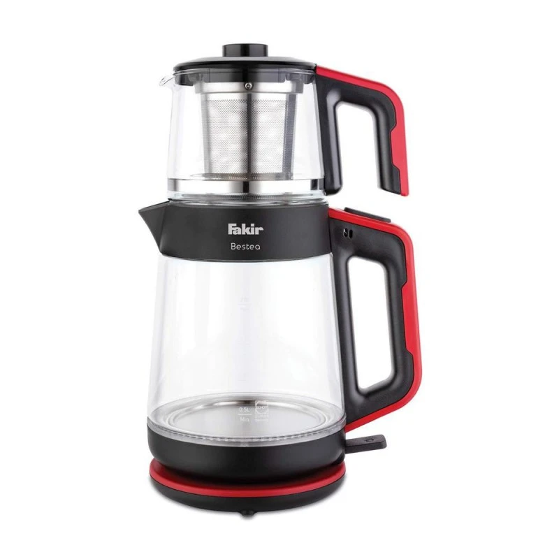 ظرفیت چای ساز فکر مدل Bestea: کتری با ظرفیت 2 لیتر و قوری شیشهای با گنجایش 1 لیتر برای تهیه چای به مقدار کافی.