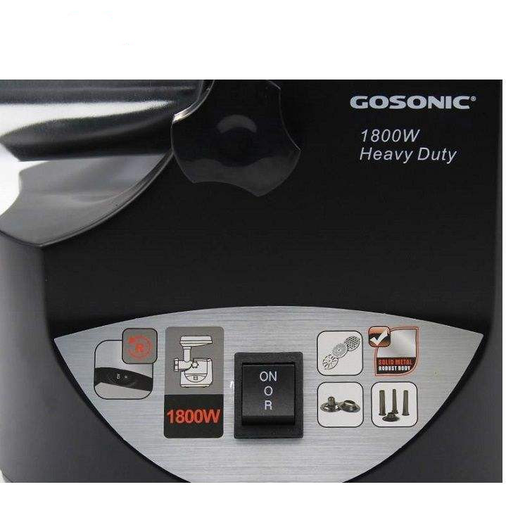 چرخ گوشت گوسونیک مدل GMG-744 از سری محصولات با کیفیت منزل و آشپزخانه می باشد.توان مصرفی ۱۸۰۰ وات می باشد.جنس بدنه ترکیب پلاستیک و آلومینیوم است.دکمه خاموش و روشن و دکمه دور معکوس برای این محصول در نظر گرفته شده است.دارای یک سینی استیل محافظ در برابر گرد و غبار مجهز است و جنس سری چرخ کننده فلزی می باشد.این محصول با ۳ مدل تیغه برش معمولی، سری سوسیس ساز و سری ریز عرضه می شود.و دارای دستهی فشار دهنده جهت امنیت هنگام کار با آن می باشد.
