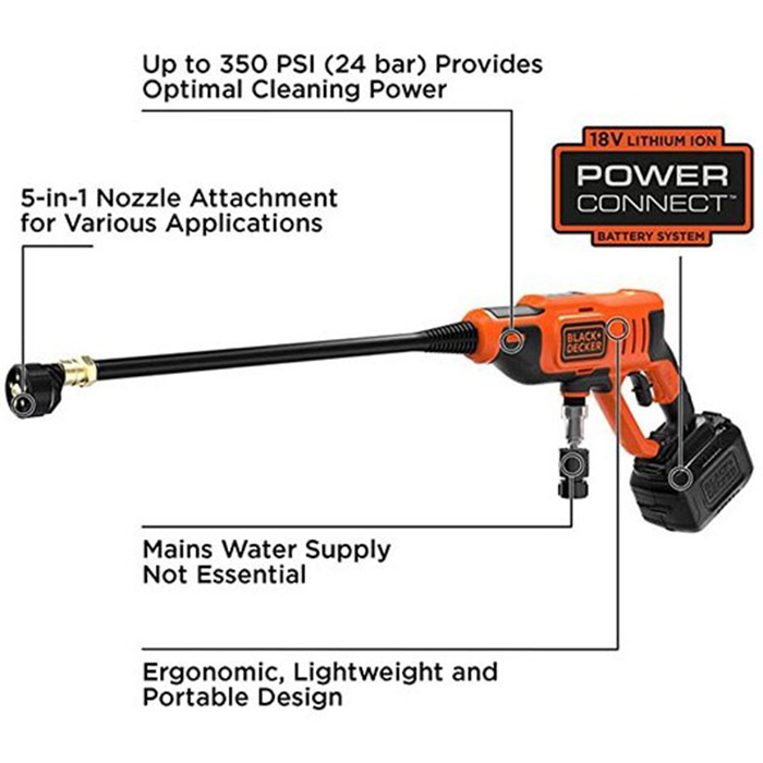 کارواش شارژی بلک اند دکر مدل BCPC18D1 با موتور و باتری قوی لیتیومی 18 ولت به همراه لوازم کامل در یک کیف که شما رو از هر خرید اضافی و پرداخت هزینه بالا بی نیاز میکنه .