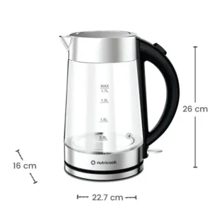 کتری برقی نوتریکوک مدل NC-GK100 با ظرفیت ۱.۷ لیتر، توان ۲۲۰۰ وات، المنت حرارتی مخفی و فیلتر ضد رسوب، انتخابی مناسب برای خانوادههای پرجمعیت است.
