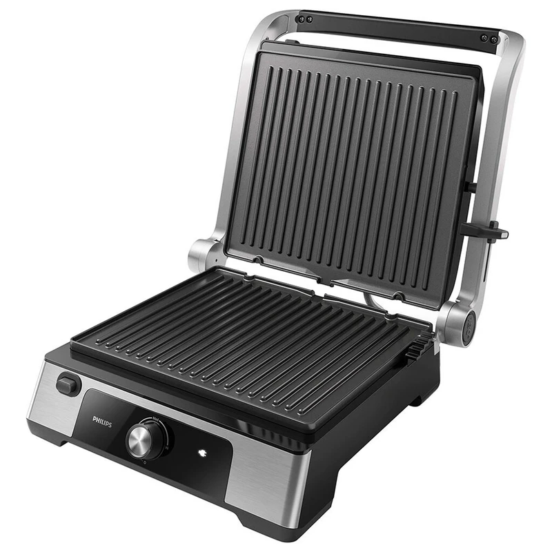 گریل فیلیپس مدل HD6301 همچنین دارای قابلیت تنظیم درجه حرارت است که به شما این امکان را میدهد تا دمای دستگاه را مطابق با نوع غذایی که در حال پخت آن هستید، تنظیم کنید. این ویژگی برای پخت انواع گوشت، مرغ، ماهی، میگو، سبزیجات، پیتزا، اسنک و دیگر غذاها بسیار مفید است. با تنظیم دقیق دما میتوانید نتیجهای بینقص از پخت و پز خود داشته باشید.