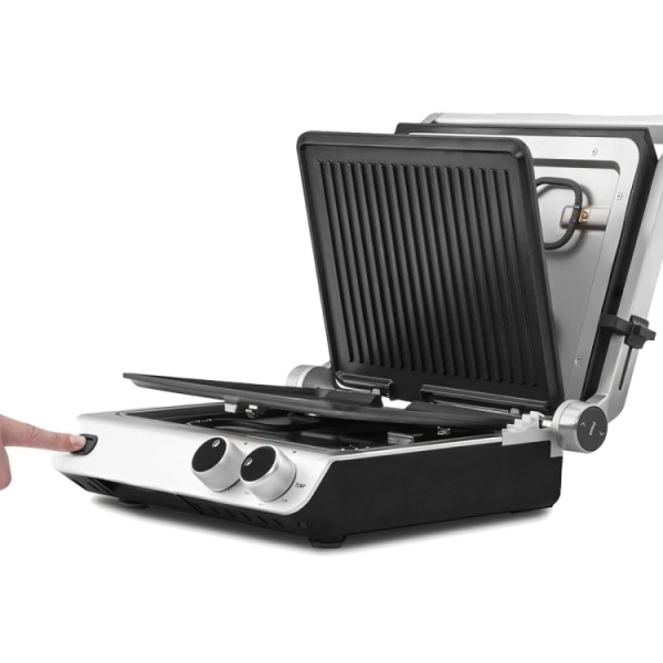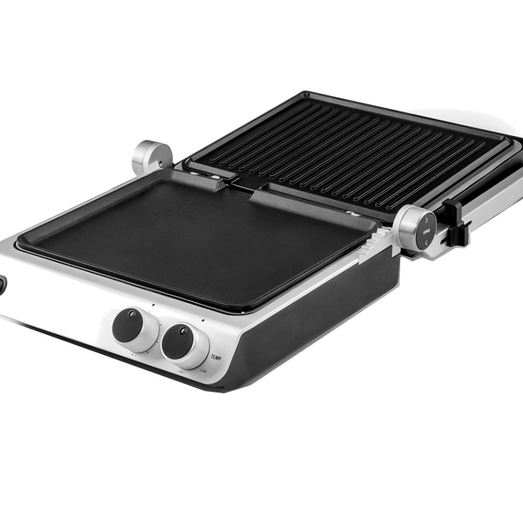 چه طرفدار یک استیک آبدار باشید با برشتهترین بافت آن، میتوانید میزان پخت را بهراحتی با استفاده از کنترل کنندههای چرخشی تعبیه شده روی پنل دستگاه با تنظیم زمان و دما تعیین کنید. یکی از این کنترلکنندهها مربوط به تنظیم مدت زمان فرایند پخت است. این مدت زمان تا 30 دقیقه کنترل میشود. به کمک دیگر اهرم چرخشی امکان کنترل دما را خواهید داشت. تنظیم دمای فرایند در 5 سطح مختلف بسته به ضخامت مواد غذایی و همچنین میزان ایدهآل مدنظر کاربر صورت میگیرد.