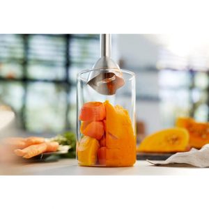 لیوان تعبیه شده جهت انجام فرایند مخلوط کردن دارای ظرفیت 500 میلیلیتر میباشد. مضاف بر این، دستگاه دارای یک همزن بالونی جهت هم زدن و ورز دادن انواع مواد غذایی و همچنین یک خردکن با ظرفیت XL است که فرایند خرد کردن انواع سبزیجات، آجیل، پیاز، پنیر و… را به آسانی امکان پذیر میکند.