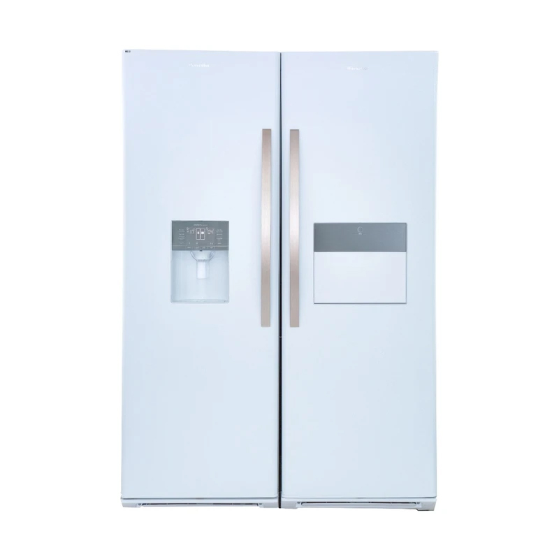 یخچال فریزر دوقلو هیمالیا پاناروما پلاس، گزینه مناسب بسیاری از افراد برای پیدا کردن یخچالهای جادار است. یخچال فریزر دوقلو هیمالیا پاناروما پلاس با حجم مفید زیاد و مطلوب ، مناسب خانواده ها می باشد و ظاهر آن نیز دارای یک طراحی یکپارچه و سراسری است به صورتی که یخچال فریزر دوقلو به صورت یک محصول واحد به نظر میرسد و پس از نصب شما یک یخچال فریزر ساید بای ساید با حجم بسیار زیاد خواهید داشت . یخچال فریزر دوقلو هیمالیا پاناروما پلاس، یخچال در سمت راست و فریزر در قسمت چپ آن قرار گرفته است و پس از نصب کاملا متصل بهم شده و امکان جدا کردن آن به راحتی میسر نمی باشد .