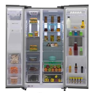 این ساید بای ساید با استفاده از کمپرسور اینورتر دیجیتال، به بهبود کارایی انرژی و کاهش مصرف برق کمک میکند. این تکنولوژی با تنظیم سرعت کمپرسور بر اساس نیاز سرمایشی، نه تنها باعث کاهش مصرف انرژی میشود بلکه عمر مفید دستگاه را نیز افزایش میدهد. استفاده از مبرد R-600a که بسیار پیشرفته است. گرید انرژی +A نشاندهنده کارایی بالای انرژی این یخچال فریزر است که منجر به کاهش هزینههای برق مصرفی میشود.